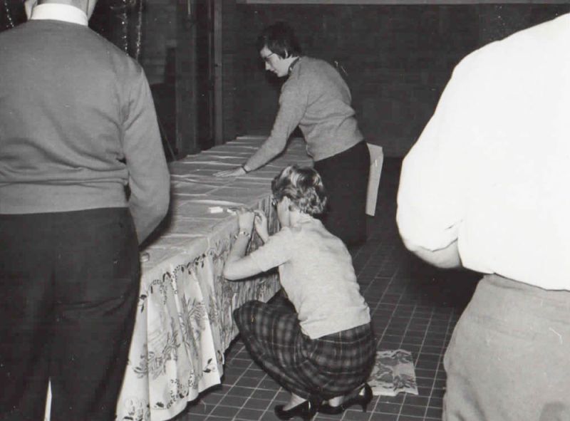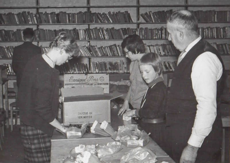 Bazar in de Ned. Hervormde Kerk. Hammy Ooms, Joke Koppert, Corrie Bol, moeder Ko