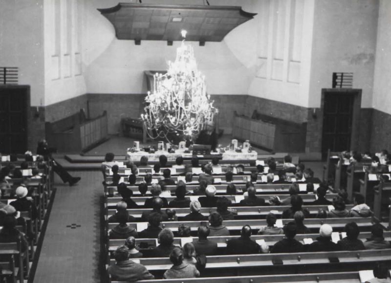Noodvoorziening voor de kerkdiensten. Laantje van Brussee bij groenteinmakerij v