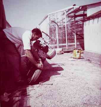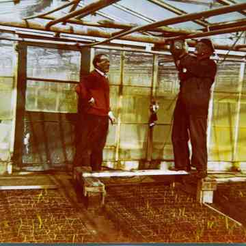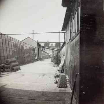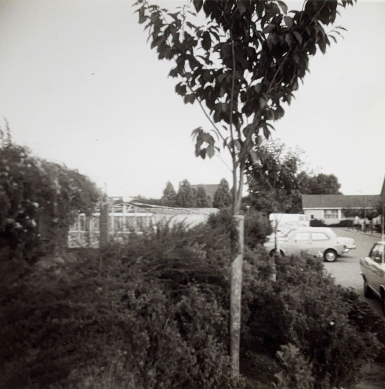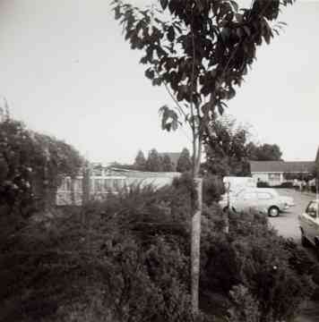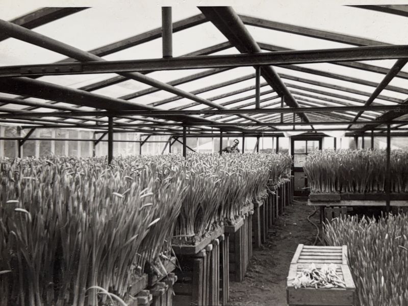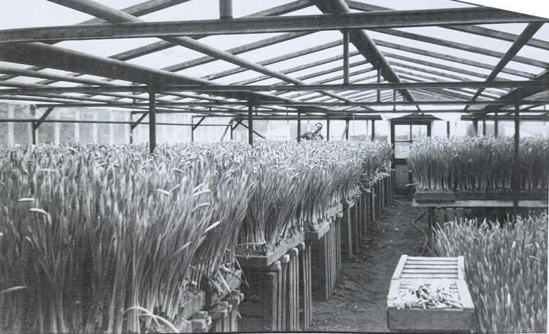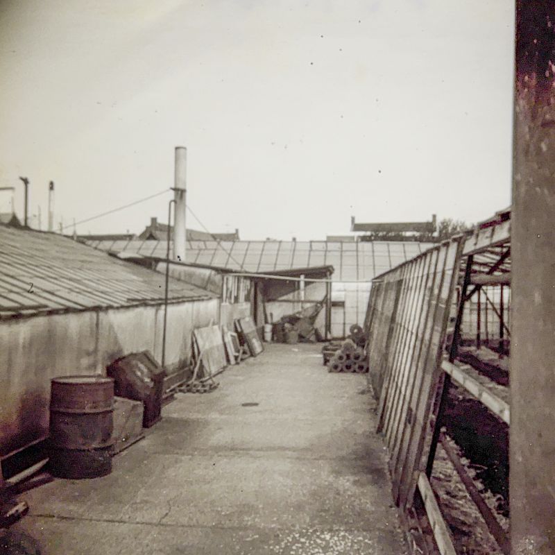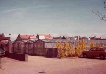 De kassen van de fa. van der Meij achter de Katwijkerweg en inmiddels gelegen aa