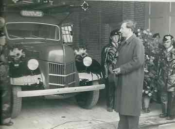 Aankomst Willy Jeep bij de nieuwe brandweerkazerne aan de Ringweg