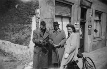 De Broekweg vanaf de Hoofdstraat gezien. De man rechts is Van Rij, een grindhand