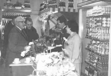 Volop drukte in de winkel aan Broekweg 8. Op de foto zie je rechts fam Visscher,