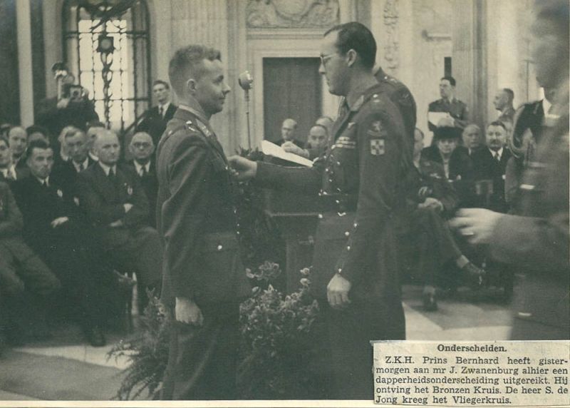 Mr. J. Zwanenburg ontvangt de Bronzen Kruis van prins Bernhard.