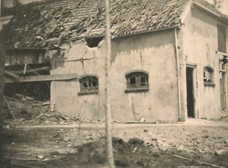 Oorlogsschade aan de stal van boerderij Barnhoorn aan de Valkenburgerweg 155, la