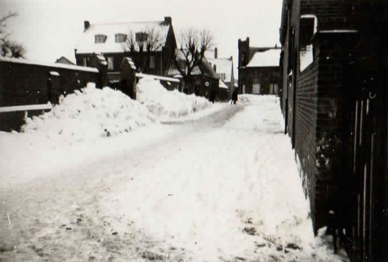 Een oud plaatje van de Kruisweg ter hoogte van turf- en kolenhandel De Wit (rech