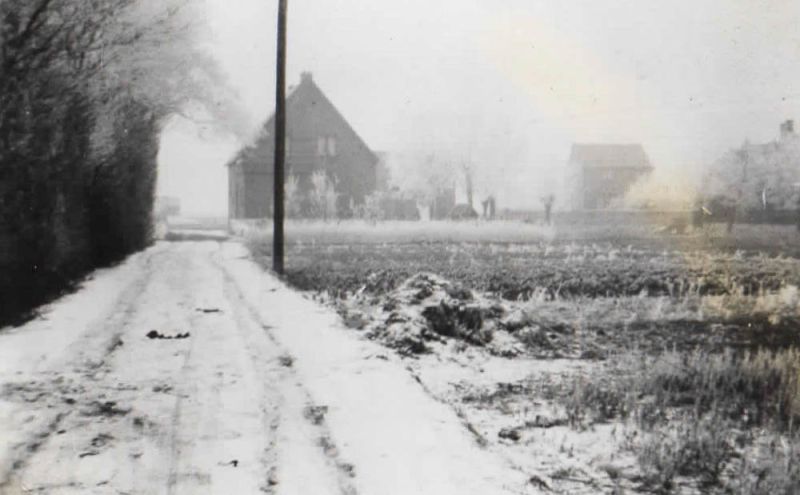 Dit laantje was de toegang vanaf de Hoofdstraat tussen de woningen 61 en 63 langs het tuinland en naar de groente-inmakerij van Maarten Brussee.