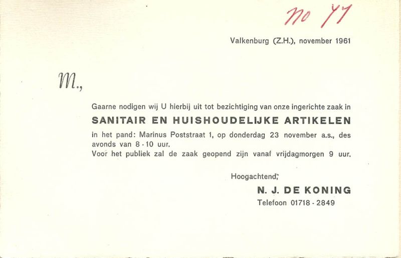 N.J. de Koning (Nico) is op eind jaren '50 voor zichzelf begonnen als loodgieter
