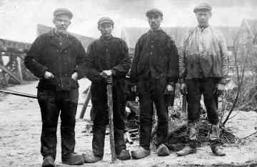 Personeel van de Kalkfabriek, vooraan vlnr: Piet Visscher, ?, Willem Gravekamp,