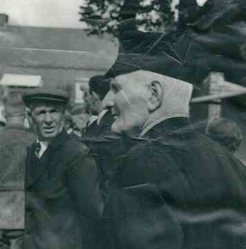 Opening paardenmarkt. Aandachtig wordt er geluisterd naar de vlotte rede van bur