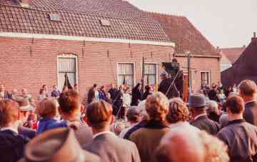 Paardenmarkt voor de kerk. op de achtergrond de winkel van Meurs.