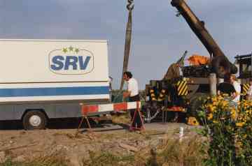 SRV-wagen van Mart van Diemen wordt getakeld na wegzakken in de berm.